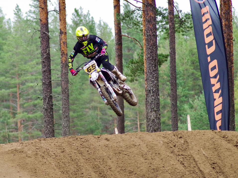 – Aika-ajo oli ihan ok vaikka ajo ei tuntunut hyvältä, mutta ensimmäisen erä oli tuloksellisesti sitä miltä tuntuikin eli huono. Startti ei onnistunut ja ei vain saanut ajoa kulkemaan millään. Toisessa erässä lähtö hiukan parempi, mutta nousin nopeasti neljänneksi ja siinä ajoin jonkun aikaa kunnes ohitin itseni kolmanneksi ja pian toiseksi. Sillä sijalla myös maaliin, MX2-luokan totaalin neljäs Roni Kytönen kertoi.