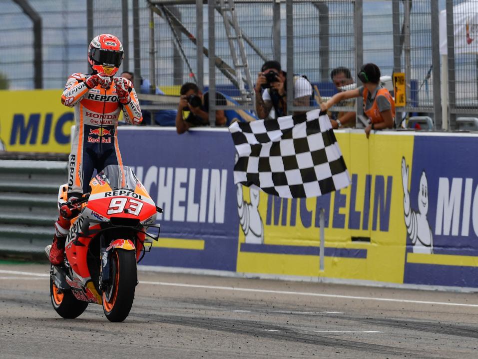 Näin Marquez siis otti neljännen peräkkäisen voittonsa 200:ssa GP-kisassaan ja kasvatti johtoaan 98 pisteeseen. Dovizioson älykäs ajo nosti hänet komeasti kymppisijalta kakkoseksi. Miller oli puolestaan kolmonen ja parhaiten menestynyt ei-tehdastallikuljettaja tällä kertaa.