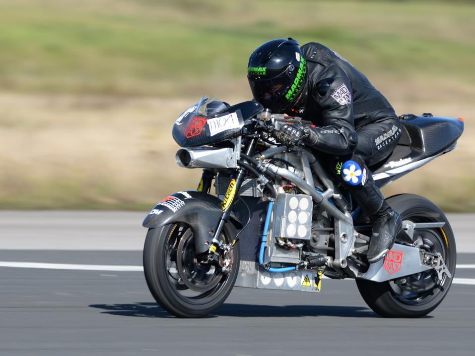 Samalla kertaa kun brittiläinen kilpa-ajaja Zef Eisenberg rikkoi nopeusennätyksen sähkömoottoripyörällään ja pyäsytti kellot 312 km/h aikaan, hän saavutti myös kolme muuta ennätystä: nopeimman lentävän neljännesmailin sekä seisovan neljännemailin ja mailin.