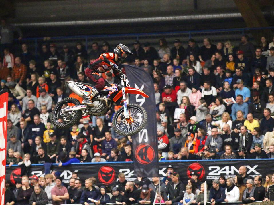 - Supercross oli todella siisti kokemus. Ajaminen oli kyllä alussa vaikeaa, koska en ole ajanut supercrossia. Mietin, että mitäköhän siitä tulee. Vaikeinta oli sovittaa rytmi hyppyreihin ja uskaltaa hypätä kaikki. Ajoni parani koko ajan, ja oli hienoa, että monella muullakin kuskilla sujui, Vesterinen kuvailee.