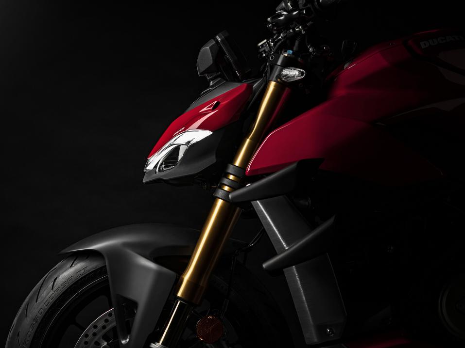 Streetfighter V4 on Panigale V4:stä tehty versio: katteitten riisumisen lisäksi siihen on vaihdettu leveämpi ohjaustanko. Tehopainosuhde on mukavat 1,17.