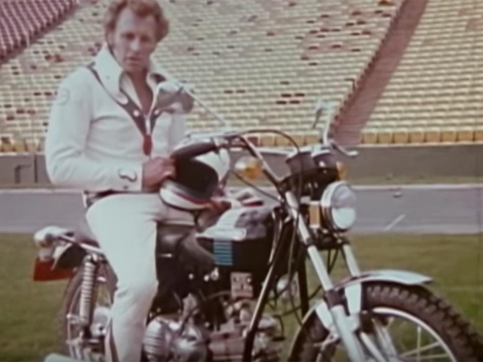 Evel Knievel keräsi maailmanlaajuista kuuluisuutta ja tunnustusta 1960-luvun lopulla kuolemaa uhmanneilla stunt-hypyillään. 1970-luvun alkuun mennessä Knievel oli yhtälailla tunnettu helposti tunnistettavasta vaatetuksestaan, jonka muodosti valkoinen ajoasu, jossa oli tähtikuvioinen, punainen, valkoinen ja sininen isänmaallinen väritys sekä tietenkin samanhenkisesti koristellut viitta, kypärä ja moottoripyörä.