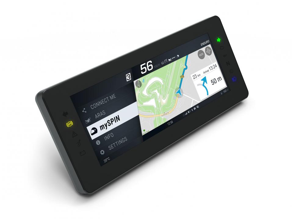 Pakettiin kuuluu mySPIN-integrointijärjestelmä, joka tuo siihen liitetyn matkapuhelimen sisällön moottoripyörän näytölle.