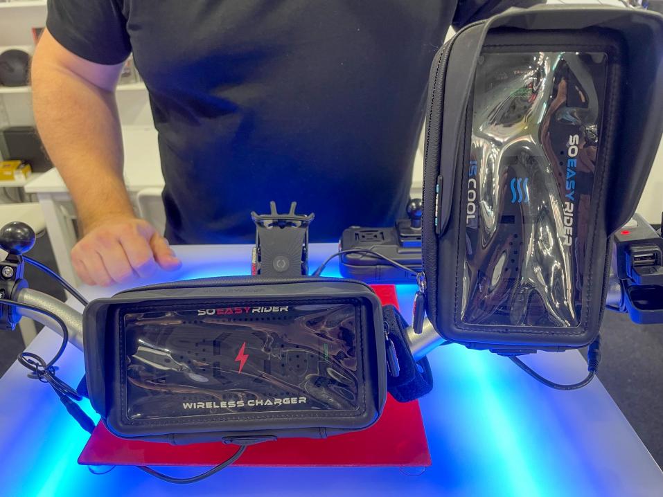 SO EASY RIDER QI Wireless Charger on maailman ensimmäinen langattomalla latausjärjestelmällä varustettu suojakotelo. Tällöin ei ole pelkoa, että puhelimesta loppuu virta kesken matkanteon. Latausominaisuuden lisäksi kotelossa on jäähdytys- ja ilmanpoistojärjestelmä, jotka estävät puhelimen liikakuumenemisen eikä kosteuskaan pääse vahingoittamaan puhelinta matkan aikana. Mukaan tulee neljä adapteri/vastaanotinta: iPhone, Type C (Huawei), Micro USB ja käänteinen Micro USB (Samsung), jotka tekevät SO EASY RIDER QI Wireless Charger:in yhteensopivaksi puhelimien kanssa.