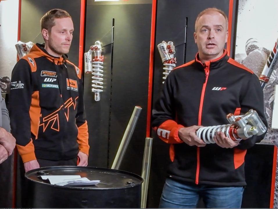 Kävimme tutkimassa asiaa Orimattilassa Motopalvelu Oy:n tiloissa, jossa mp-mekaanikko Karri Anttila asensi KTM 890 R:n WP:n Xplor Pro Component etuteleskoopin ja takaiskunvaimentimen. Oheisella videolla asiantuntijoina äänessä ovat Motopalvelun Leif Holm ja WP:n Juha Salminen. Puhetta johdattelemassa Motouutisten Erkki Mäki.