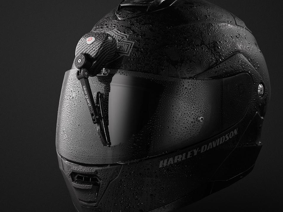 Bikerguard muodostuu kahdesta osasta: moottoripyörän ohjaustankoon asennettavasta ohjaimesta ja itse pyyhkijälaitteesta, joka asennetaan kypärän visiirin yläosaan.