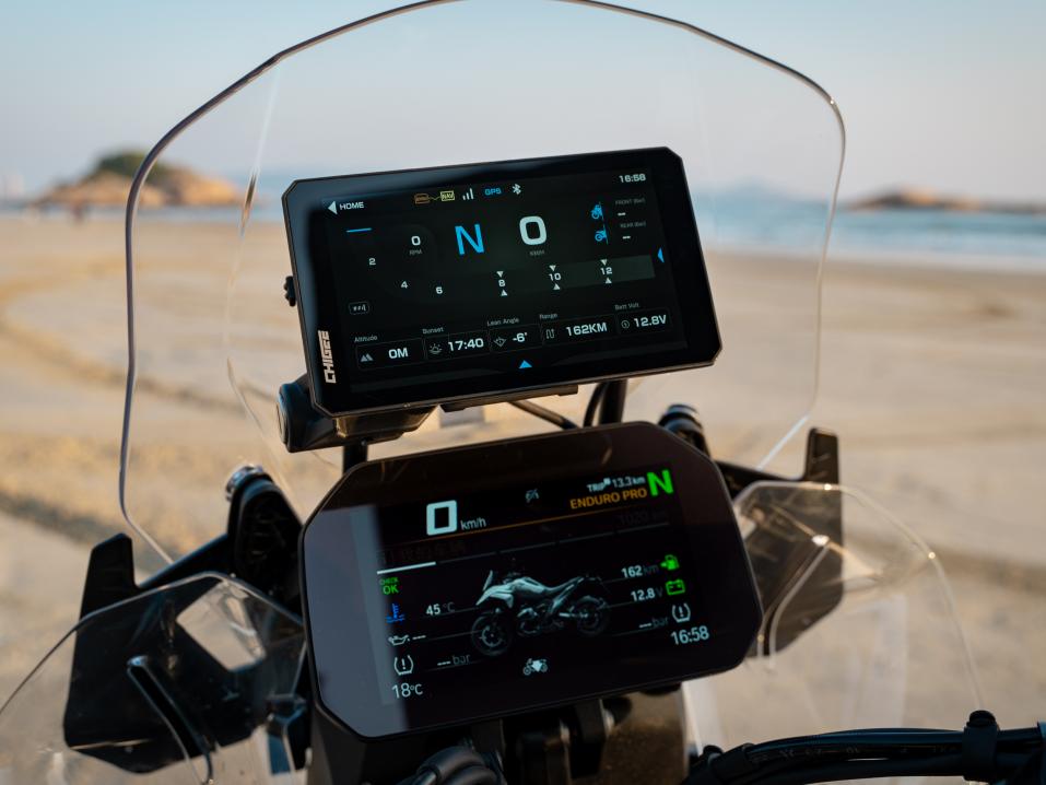 – Jokainen piirre AIO-6:ssa on suunniteltu reaalimaailman tarpeiden mukaan, toteaa Chigeen puhemies. – Me mietimme uusiksi, millainen moottoripyörään tarkoitetun älynäyttöjärjestelmän pitäisi olla, perustuen siihen, miten kuljettjat oikeasti ajavat, pysäköivät ja elävät moottoripyöriensä kanssa.