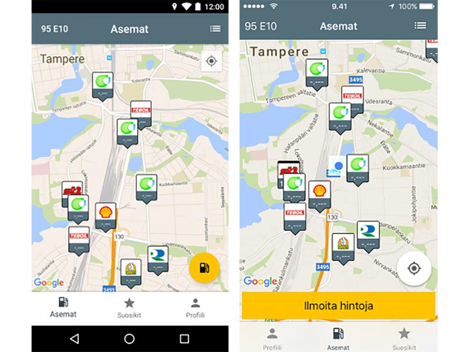 Hintatietopalveluita on olemassa muitakin, mutta Riku Pelanderin Tankille-palvelu on ainoa, joka näyttää yksittäisten huoltoasemien hinnat ennaltasyötetyn reitin varrella.