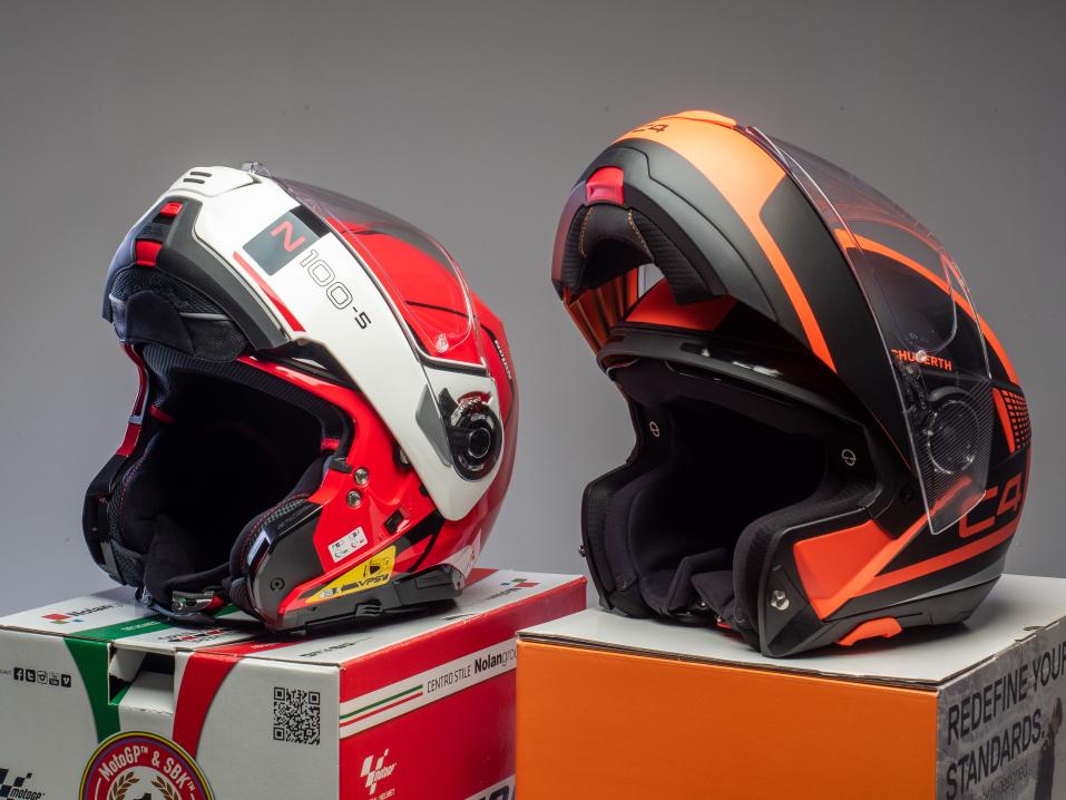 Nolan N100-5 ja ulkomitoiltaan suurempi Schuberth C4.